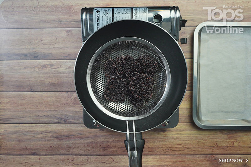 6.ทอดข้าวที่นำไปตากแดดมาในน้ำมันร้อน จัดจานพร้อมเสิร์ฟ