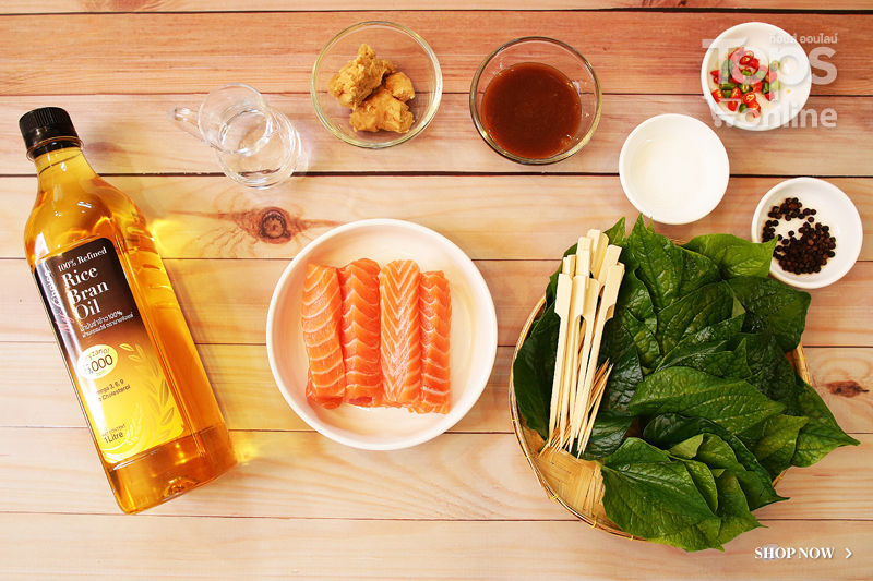 จัดไปเมนูเพื่อสุขภาพอย่าง “แซลมอนย่างใบชะพลู” ใช้น้ำมันรำข้าวจากมายช้อยส์ ไม่ทำร้ายสุขภาพแน่นอน ไปเข้าครัวกันเลยค่ะ