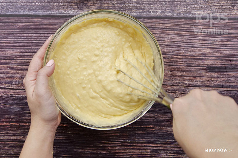 1.วิธีทำแป้งโตเกียว : ผสมแป้ง นม เนย ขาไก่ และน้ำเปล่า ตีให้เข้ากัน