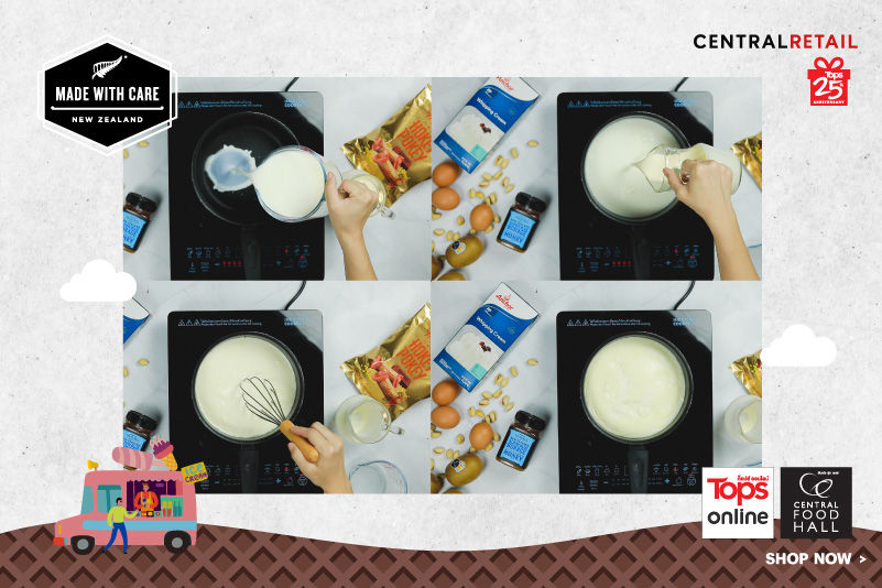 2. ต้มนมสด กับ วิปปิ้งครีม จนเดือด และเกิดฟอง