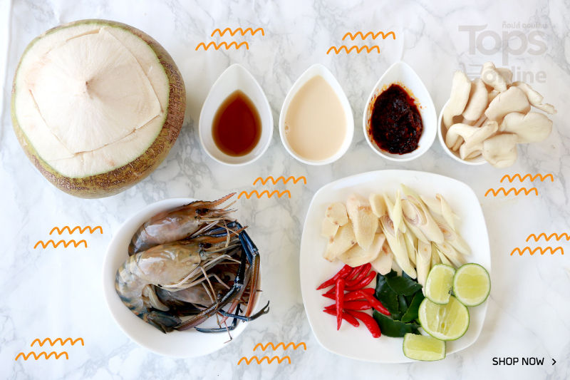 แต่นอกจากจะเอาไปทานเปล่าๆ นำไปปั่น นำไปทำขนมแล้ว อีกอย่างที่นิยมไม่แพ้กันก็คือการนำไปประกอบอาหารคาว วันนี้แอดมินจะชวนไปทำอาหารไทยที่ใครก็รู้จักกันอย่างต้มยำกุ้งกันค่ะ พิเศษหน่อยตรงที่เราจะไม่ทำจากน้ำเปล่าธรรมดาๆ แต่วันนี้จะทำจากน้ำมะพร้าวกัน จะให้ความหอมหวานพิเศษกว่าแบบทั่วๆไปแน่นอน